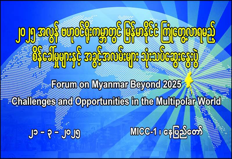 ၂၀၂၅ အလွန် ဗဟုဝင်ရိုးကမ္ဘာတွင် မြန်မာနိုင်ငံ ကြုံတွေ့လာရမည့် စိန်ခေါ်မှုများနှင့် အခွင့်အလမ်းများ သုံးသပ်ဆွေးနွေးပွဲ