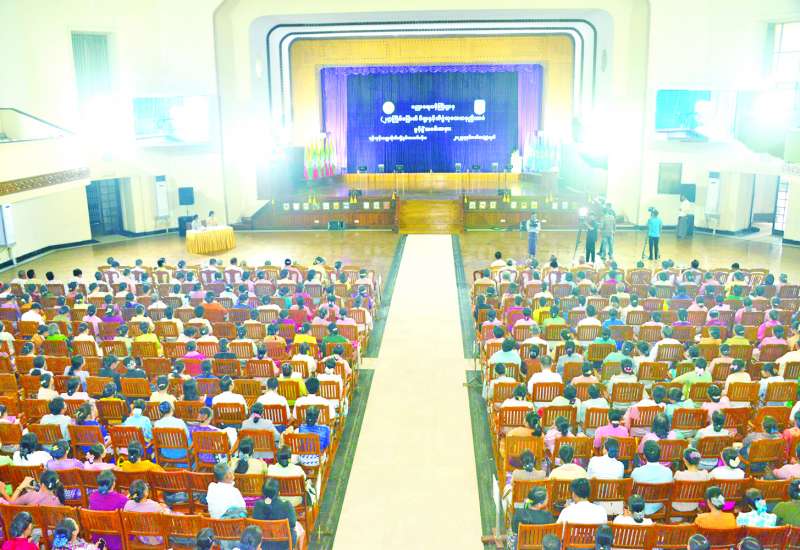 နယ်စပ်ရေးရာဝန်ကြီးဌာန ဥပဒေအသိပညာပြန့်ပွားရေး ဆင့်ပွားသင်တန်းအမှတ်စဉ် (၂) သင်တန်းဆင်းပွဲအခမ်းအနားကို ယနေ့နံနက်ပိုင်းတွင် နယ်စပ်ရေးရာဝန်ကြီးဌာန ဧရာဝတီခန်းမ၌ကျင်းပရာ နိုင်ငံတော်စီမံအုပ်ချုပ်ရေးကောင်စီအဖွဲ့ဝင် နယ်စပ်ရေးရာဝန်ကြီးဌာန ပြည်ထောင်စုဝန်ကြီး ဒုတိယဗိုလ်ချုပ်ကြီး ရာပြည့်၊ ဒုတိယဝန်ကြီး ဗိုလ်ချုပ် ဖြိုးသန့်၊ အမြဲတမ်းအတွင်းဝန်၊ ညွှန်ကြားရေးမှူးချုပ်၊ ဝန်ကြီးရုံးနှင့် ဦးစီးဌာနများမှ အရာထမ်း၊ အမှုထမ်းများ၊ သင်တန်းနည်းပြများနှင့် သင်တန်းသား သင်တန်းသူများ တက်ရောက်ကြသည်။