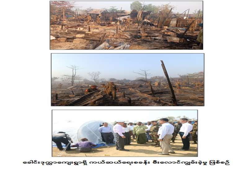 ရခိုင်ပြည်နယ်၊ စစ်တွေမြို့နယ်၊ ခေါင်းဒုက္ကာကျေးရွာရှိ ကယ်ဆယ်ရေးစခန်း၌ မတ်လ ၁ ရက် နံနက် ၂ နာရီ ၁၅ မိနစ်အချိန်ခန့်တွင် မီးလောင်မှုဖြစ်ပွားခဲ့သဖြင့် အနောက်ပိုင်းတိုင်းစစ်ဌာနချုပ်၊ စစ်တွေတပ်နယ်မှ နယ်မြေခံတပ်မတော်သားများ၊ မြန်မာနိုင်ငံရဲတပ်ဖွဲ့ဝင်များ၊ ပြည်နယ်မီးသတ်တပ်ဖွဲ့ဝင်များက မီးသတ်ယာဉ် ၂ စီး၊ ရေသယ်ယာဉ် ၃ စီး၊ တပ်မတော်ရေသယ်ယာဉ် ၁ စီးတို့နှင့် ဝိုင်းဝန်းမီးငြှိမ်းသတ်ခဲ့ကြကြောင်း သိရှိရသည်။