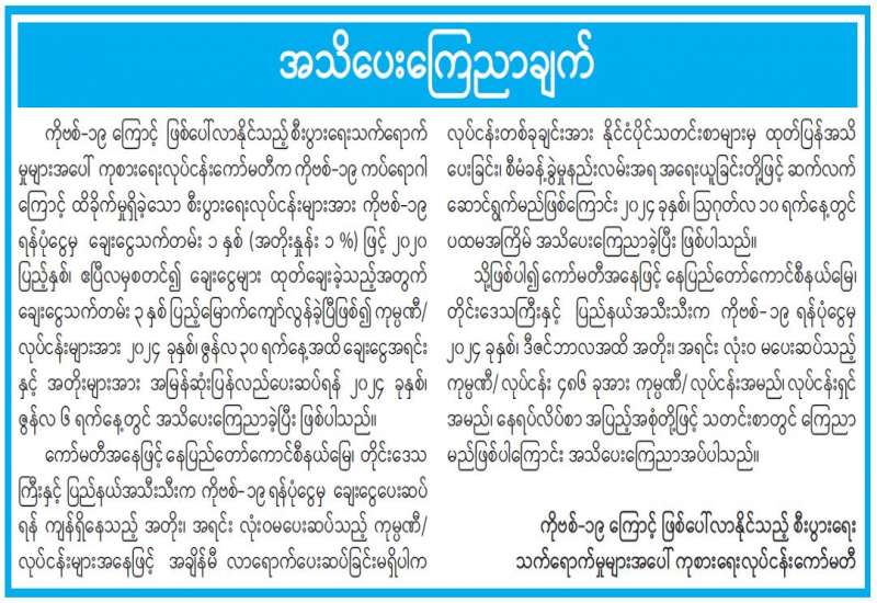 ရန်ကုန်မြို့နှင့် မန္တလေးမြို့အတွက် ရည်ညွှန်းလက်ကားဈေးနှုန်းများနှင့် ပြည်ထောင်စုနယ်မြေ နေပြည်တော်၊ တိုင်းဒေသကြီး/ပြည်နယ် မြို့တော်များအတွက် ရည်ညွှန်းလက်လီဈေးနှုန်းများ