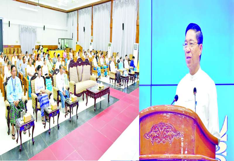 ရင်းနှီးမြှုပ်နှံမှုနှင့် နိုင်ငံခြားစီးပွား ဆက်သွယ်ရေးဝန်ကြီးဌာနနှင့် နေပြည်တော်ကောင်စီ ရင်းနှီးမြှုပ်နှံမှုကော်မတီတို့ ကြီးမှူးကျင်းပသည့် ပြည်ထောင်စုနယ်မြေ နေပြည်တော်၏ ရင်းနှီးမြှုပ်နှံမှုအခွင့်အလမ်းများနှင့် ပြည်ပပို့ကုန်မြှင့်တင်ရေးဆိုင်ရာ အသိပညာမျှဝေဆွေးနွေးပွဲကို ယနေ့နံနက်ပိုင်းတွင် နေပြည်တော်ကောင်စီရုံး ဇမ္ဗူသီရိခန်းမ၌ ကျင်းပသည်။