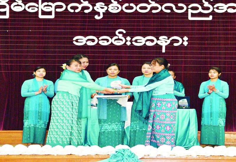 မြန်မာနိုင်ငံ အမျိုးသမီးရေးရာအဖွဲ့ချုပ်၏ (၂၁) ကြိမ်မြောက် နှစ်ပတ်လည်အစည်းအဝေး ဖွင့်ပွဲအခမ်းအနားကို ယနေ့နံနက်ပိုင်းတွင် နေပြည်တော်ရှိ မြန်မာနိုင်ငံ အမျိုးသမီးရေးရာအဖွဲ့ချုပ်ရုံး သီရိရတနာခန်းမ၌ကျင်းပရာ နိုင်ငံတော်စီမံအုပ်ချုပ်ရေးကောင်စီဥက္ကဋ္ဌ နိုင်ငံတော်ဝန်ကြီးချုပ်၏ ဇနီး မြန်မာနိုင်ငံ အမျိုးသမီးရေးရာအဖွဲ့ချုပ် ဂုဏ်ထူးဆောင်နာယက ဒေါ်ကြူကြူလှ တက်ရောက်ချီးမြှင့်သည်။