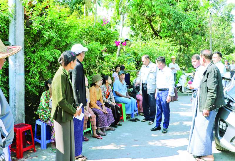 ဧရာဝတီတိုင်းဒေသကြီး ဝါးခယ်မမြို့နယ်အတွင်းရှိ မဲရုံအသီးသီး၌ မဲပေးပိုင်ခွင့်ရှိသူပြည်သူများ လာရောက်ဆန္ဒမဲပေးလျက်ရှိရာ မြေပြင်ကွင်းဆင်းစာရင်း ကောက်ယူရေးကြီးကြပ်မှုဗဟိုကော်မတီဥက္ကဋ္ဌ လူဝင်မှုကြီးကြပ်ရေးနှင့် ပြည်သူ့အင်အားဝန်ကြီးဌာန ပြည်ထောင်စုဝန်ကြီး ဦးမြင့်ကြိုင်သည် တာဝန်ရှိသူများနှင့်အတူ ဝါးခယ်မမြို့နယ် ကျုံမငေးမြို့ သီရိဟေမာရပ်ကွက်ရှိ မဲရုံ၊ မြစိမ်းရပ်ကွက်ရှိ မဲရုံများသို့သွားရောက်၍ မဲဆန္ဒရှင်ပြည်သူများ အေးချမ်းစွာဆန္ဒမဲပေးနေမှုကို ကြည့်ရှုအားပေးကာ မဲရုံမှူးနှင့် တာဝန်ရှိသူများကို လိုအပ်သည်များဖြည့်ဆည်း ဆောင်ရွက်ပေးသည်။