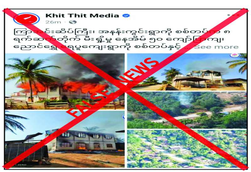 ကရင်ပြည်နယ် ကြာအင်းဆိပ်ကြီးမြို့နယ် အနန်းကွင်းကျေးရွာရှိ နေအိမ်များအား ဇန်နဝါရီ ၂၉ ရက်မှ ဖေဖော်ဝါရီ ၅ ရက်အထိ လုံခြုံရေးတပ်ဖွဲ့ဝင်များက မီးရှို့ဖျက်ဆီးခဲ့သည်ဟု ပြည်ဖျက်မီဒီယာများက သတင်းအမှားများ မဟုတ်မမှန်ရေးသားဖြန့်ဝေလျက်ရှိကြောင်း တွေ့ရှိရသည်။