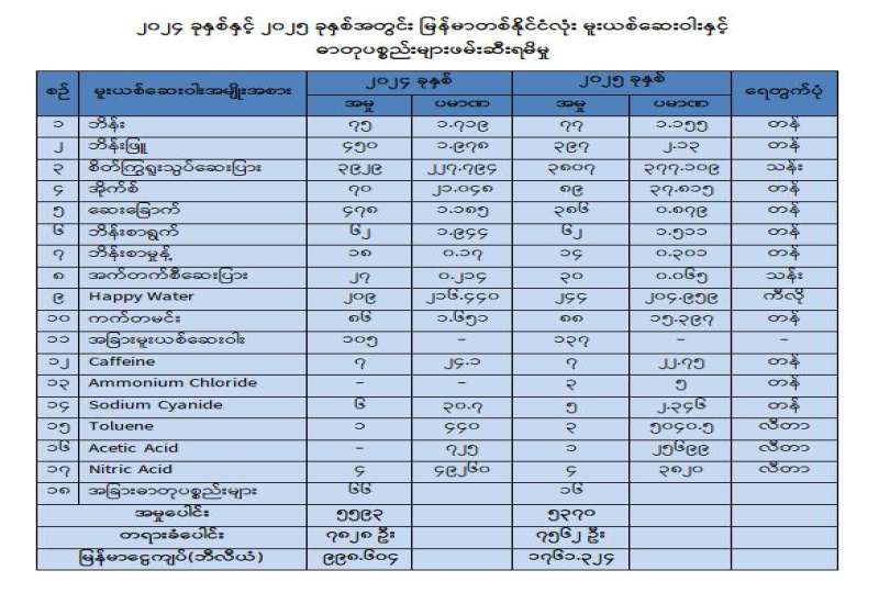 မြန်မာနိုင်ငံအနေဖြင့် မူးယစ်ဆေးဝါးတားဆီးနှိမ်နင်းရေးလုပ်ငန်းများကို အမျိုးသားရေးတာဝန်တစ်ရပ်အနေဖြင့် သတ်မှတ်၍ တားဆီးနှိမ်နင်းရေးအဖွဲ့များဖြစ်သည့် တပ်မတော်၊ မြန်မာနိုင်ငံရဲတပ်ဖွဲ့နှင့် အကောက်ခွန်ဦးစီးဌာနတို့မှ ဆက်စပ်ဌာနဆိုင်ရာများနှင့်ပူးပေါင်း၍ တစ်နိုင်ငံလုံးလွှမ်းခြုံသည့် မူးယစ်ဆေးဝါးသတင်းရယူဖော်ထုတ်ဖမ်းဆီးရမိရေး စီမံချက်ချမှတ်ပြီး တားဆီးနှိမ်နင်းရေးလုပ်ငန်းများကို အရှိန်အဟုန်မြှင့်ဆောင်ရွက်ခဲ့ရာ ၂၀၂၅ ခုနှစ်အတွင်း မူးယစ်ဆေးဝါးအမှုပေါင်း ၅၃၇၀ မှုမှ တရားခံ ၇၅၆၂ ဦးတို့ကို ငွေကျပ် ၁၇၆၁ ဒသမ ၃၂၄ ဘီလီယံတန်ဖိုးရှိ ဘိန်း ၁ တန်ကျော်၊ ဘိန်းဖြူ ၂ ဒသမ ၁ တန်ကျော်၊ စိတ်ကြွရူးသွပ်ဆေးပြား ၃၇၇ သန်းကျော်၊ အိုက်စ် ၃၇ ဒသမ ၈ တန်ကျော်၊ ဘိန်းစာရွက် ၁ ဒသမ ၅ တန်ကျော်၊ HAPPY WATER ၂၀၄ ကီလိုကျော်၊ ကက်တမင်း ၁၅ တန်ကျော်အပါအဝင် အခြားမူးယစ်ဆေးဝါးများ၊ မောင်းပြန်ရိုင်ဖယ် ၂ လက်၊ ပစ္စတိုသေနတ် ၄၀ လက်၊ လုပ်သေနတ် ၂ လက်၊ ကျည်မျိုးစုံ ၂,၇၆၄ တောင့်၊ လက်ပစ်ဗုံး ၅ လုံးနှင့် ဒီတိုနေတာမျိုးစုံ ၁၈၇,၄၀၀ ချောင်းတို့နှင့်အတူ ဖမ်းဆီးရမိခဲ့ကြောင်း မြန်မာနိုင်ငံရဲတပ်ဖွဲ့မှ သိရှိရသည်။