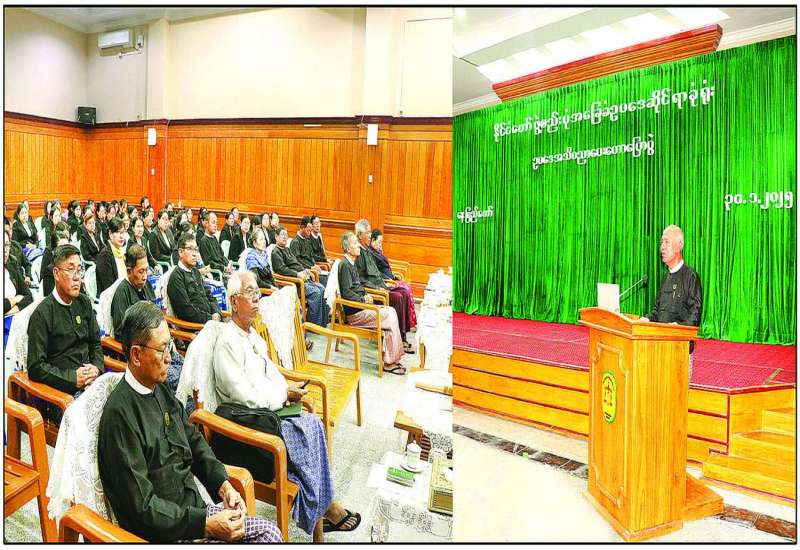 နိုင်ငံတော်ဖွဲ့စည်းပုံအခြေခံဥပဒေဆိုင်ရာခုံရုံးတွင် တာဝန်ထမ်းဆောင်လျက်ရှိသော နိုင်ငံ့ဝန်ထမ်းများအတွက် ဥပဒေအသိပညာပေးဟောပြောပွဲကို ယနေ့မွန်းလွဲပိုင်းတွင် အဆိုပါရုံး၌ကျင်းပရာ နိုင်ငံတော်ဖွဲ့စည်းပုံအခြေခံဥပဒေဆိုင်ရာခုံရုံးဥက္ကဋ္ဌနှင့်အဖွဲ့ဝင်များ၊ အရာထမ်း၊ အမှုထမ်းများ တက်ရောက်ကြသည်။