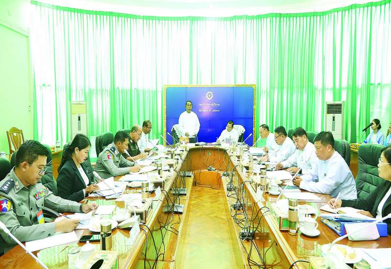 ပြည်ပနိုင်ငံများတွင် အလုပ်လုပ်ကိုင်နေသည့် မြန်မာအလုပ်သမားများနှင့်စပ်လျဉ်း၍ ပြည်ပတွင် အလုပ်လုပ်ကိုင်မှုကြီးကြပ် ရေးကော်မတီအဖွဲ့ဝင်များ ညှိနှိုင်းအစည်းအဝေးကို ယနေ့နံနက်ပိုင်းတွင် အလုပ်သမားဝန်ကြီးဌာန အစည်းအဝေးခန်းမ၌ ကျင်းပသည်။