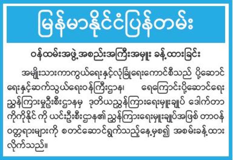 ရန်ကုန်မြို့နှင့် မန္တလေးမြို့အတွက် ရည်ညွှန်းလက်ကားဈေးနှုန်းများနှင့် ပြည်ထောင်စုနယ်မြေ နေပြည်တော်၊ တိုင်းဒေသကြီး/ပြည်နယ် မြို့တော်များအတွက် ရည်ညွှန်းလက်လီဈေးနှုန်းများ