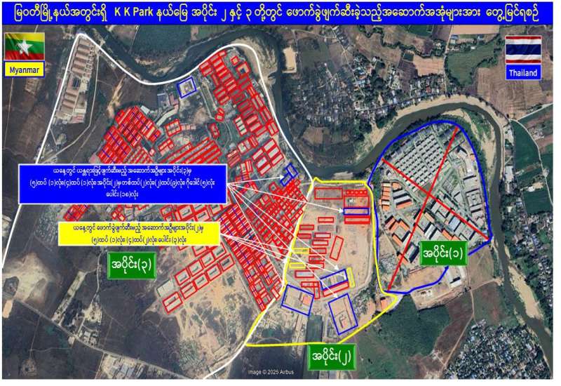 မြန်မာနိုင်ငံအစိုးရအနေဖြင့် အွန်လိုင်းလိမ်လည်လောင်းကစားမှုများ အများဆုံးအခြေချလုပ်ကိုင်လျက်ရှိကြသည့် ရွှေကုက္ကိုလ်နယ်မြေနှင့် KK Park နယ်မြေများရှိတရားမဝင် အဆောက်အအုံများအတွင်း ဝင်ရောက်ရှင်းလင်း၍ အွန်လိုင်းလိမ်လည် လောင်းကစားမှုလုပ်ငန်းစဉ်များတွင် အသုံးပြုခဲ့သည့် သိမ်းဆည်းရမိပစ္စည်းများအား စနစ်တကျဖျက်ဆီးခြင်းနှင့် တရားမဝင်အဆောက်အအုံများအား စနစ်တကျဖြိုချဖျက်ဆီးခြင်းများကို အဖွဲ့စုံပါဝင်သည့် ပူးပေါင်းအဖွဲ့ဖြင့် ဆောင်ရွက်လျက်ရှိရာ ယနေ့တွင်လည်း KK Park နယ်မြေအတွင်းရှိ တရားမဝင်အဆောက်အအုံ ၂၁ လုံးကို ထပ်မံဖြိုချဖျက်ဆီးခဲ့ကြောင်း သိရှိရသည်။