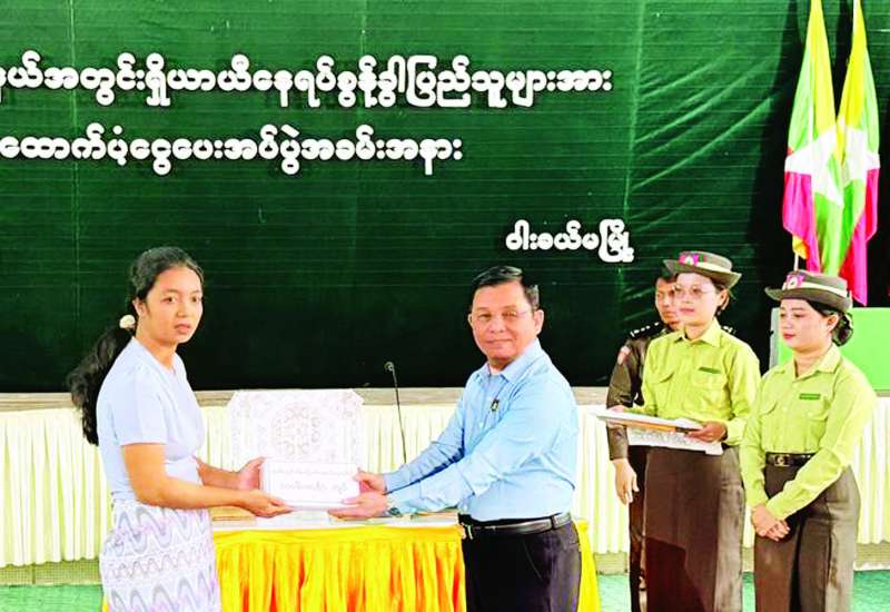 ဧရာဝတီတိုင်းဒေသကြီး ဝါးခယ်မမြို့နယ်အတွင်းသို့ ယာယီရွှေ့ပြောင်းနေထိုင်သူ ပြည်သူများအား ဇူလိုင်၊ ဩဂုတ်၊ စက်တင်ဘာ(၃)လစာ ထောက်ပံ့ငွေပေးအပ်ပွဲကို ယနေ့နံနက် ၉ နာရီခွဲက ဝါးခယ်မမြို့နယ် ရွှေခယ်သီရိခန်းမ၌ ကျင်းပသည်။
