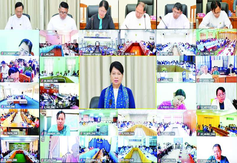 ပညာရေးဝန်ကြီးဌာန ပြည်ထောင်စုဝန်ကြီး ဒေါက်တာချောချောစိန်သည် ယနေ့မွန်းလွဲပိုင်းတွင် နေပြည်တော် ပညာရေးဝန်ကြီးဌာနရုံးအမှတ်(၁၃)ရှိ အစည်းအဝေးခန်းမ၌ တက္ကသိုလ်၊ ဒီဂရီကောလိပ်များ၏ ပါမောက္ခချုပ်များ၊ ကျောင်းအုပ်ကြီးများ၊ ဒုတိယပါမောက္ခချုပ်များ၊ ပါမောက္ခများနှင့် တွေ့ဆုံဆွေးနွေးရာတွင် တက္ကသိုလ်၊ ဒီဂရီကောလိပ်များမှ ကျောင်းသား ကျောင်းသူများ၏ ကျောင်းတက်ရာခိုင်နှုန်း မြင့်မားစေရေးအတွက် သင်ယူမှုဝန်းကျင်ကောင်း ဖြစ်ပေါ်လာစေရေး စီစဉ်ဆောင်ရွက်ထားကြရန်လိုပါကြောင်း မှာကြားသည်။