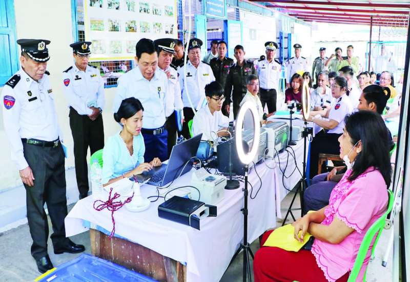 လူဝင်မှုကြီးကြပ်ရေးနှင့်ပြည်သူ့အင်အားဝန်ကြီးဌာန ပြည်ထောင်စုဝန်ကြီး ဦးမြင့်ကြိုင်သည် လူဝင်မှုကြီးကြပ်ရေးဦးစီးဌာန ညွှန်ကြားရေးမှူးချုပ် ဦးရဲထွန်းဦးနှင့် တာဝန်ရှိသူများနှင့်အတူ ယနေ့နံနက်ပိုင်းတွင် ရန်ကုန်တိုင်းဒေသကြီး တာမွေမြို့နယ်သို့ သွားရောက်၍ လူဝင်မှုကြီးကြပ်ရေးနှင့်ပြည်သူ့အင်အားဝန်ကြီးဌာန တာမွေမြို့နယ်ဦးစီးမှူးရုံး၌ ဝန်ထမ်းများက အိမ်ထောင်စုလူဦးရေစာရင်းနှင့် နိုင်ငံသားစိစစ်ရေးကတ်ပျက်စီး/ ပျောက်ဆုံးသွားသည့် ဒေသခံပြည်သူများနှင့် နိုင်ငံသားစိစစ်ရေးကတ်မရရှိသေးသူများအား ပန်းခင်းစီမံချက်အဆင့် (၃)ဖြင့် ဆောင်ရွက်ပေးနေမှုကို ကြည့်ရှုအားပေးကာ လာရောက်ဆောင်ရွက်ကြသည့် ဒေသခံပြည်သူများအား ရင်းရင်းနှီးနှီးနှုတ်ဆက်၍ လိုအပ်သည်များကို တာဝန်ရှိသူများနှင့် ညှိနှိုင်းဆောင်ရွက်ပေးသည်။