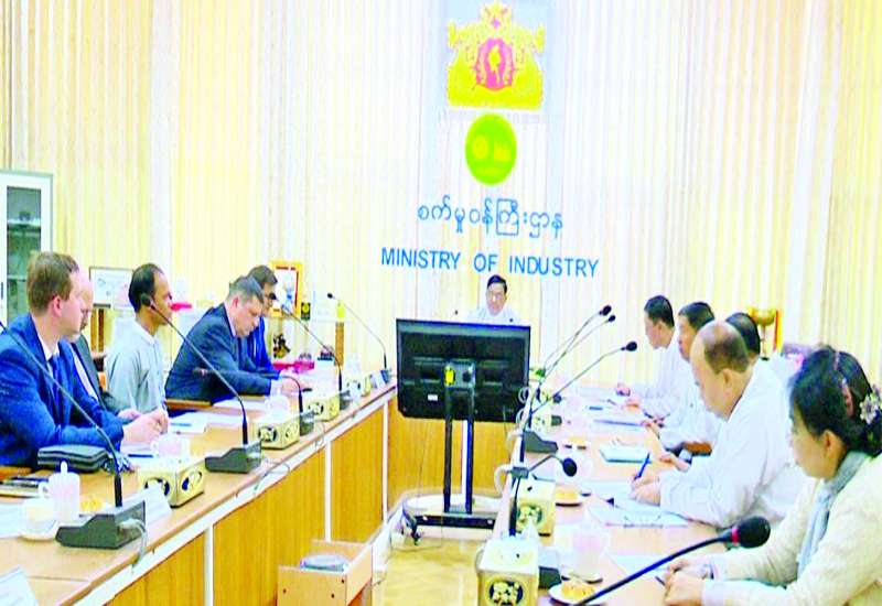စက်မှုဝန်ကြီးဌာန ပြည်ထောင်စုဝန်ကြီး ဒေါက်တာချာလီသန်းသည် ရုရှားဖက်ဒရေးရှင်းနိုင်ငံ နိုင်ငံပိုင်အဖွဲ့အစည်း Rostec ၏ ကိုယ်စားလှယ် Mr. Pavel E. Saplin နှင့် Tyazhpromexport (TPE) Co., Ltd. မှ Chief Engineer Mr. Aleksandr Senin တို့ ဦးဆောင်သည့် ကိုယ်စားလှယ်အဖွဲ့အား ယနေ့မွန်းလွဲပိုင်းတွင် စက်မှုဝန်ကြီးဌာန ရုံးအမှတ်(၃၀) အစည်းအဝေးခန်းမ၌ တွေ့ဆုံသည်။