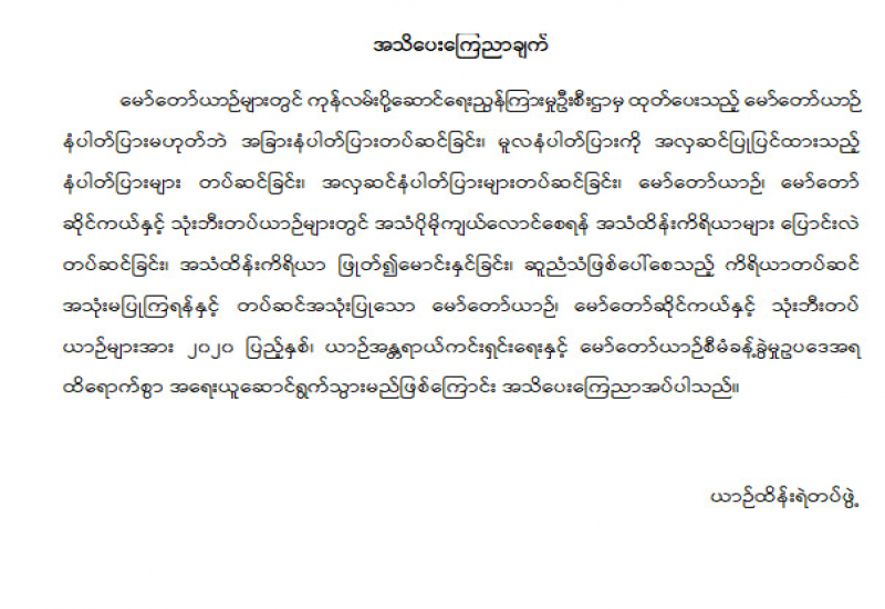 အကြမ်းဖက်အုပ်စုအဖြစ် ကြေညာထားသည့် CRPH ၊ NUG နှင့် ယင်းတို့၏ လက်ဝေခံအဖွဲ့အစည်းများ၊ ယင်းတို့နှင့် ဆက်နွှယ်နေသောအဖွဲ့အစည်းများ၊ လူပုဂ္ဂိုလ်များသည် နိုင်ငံတော်တည်ငြိမ်အေးချမ်းရေးကို ပျက်ပြားစေရန်နှင့် အစိုးရယန္တရားများပျက်ပြားစေရန် ရည်ရွယ်လျက် လှုံ့ဆော်ခြင်း၊ ဝါဒဖြန့်ခြင်းများပြုလုပ်ခဲ့မှုအပေါ် ဥပဒေနှင့်အညီ ထိရောက်စွာ အရေးယူသွားမည်ဖြစ်ကြောင်းနှင့် ထိုသို့ လှုံ့ဆော်သူ၊ ဝါဒဖြန့်သူများအား ဆက်လက်ဖော်ထုတ်အရေးယူသွားမည်ဖြစ်ကြောင်း မိဘပြည်သူများ သိရှိနိုင်ရေး အသိပေးသတင်းထုတ်ပြန်ပြီးဖြစ်သည်။