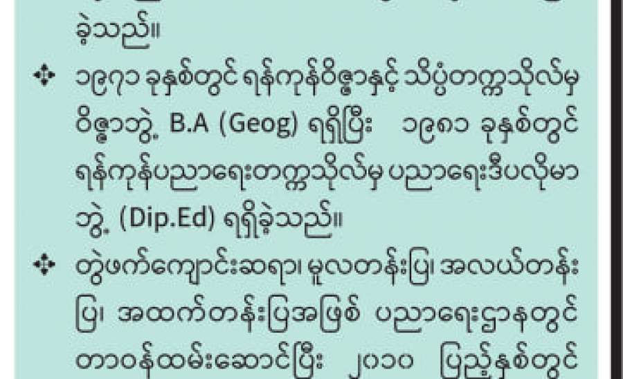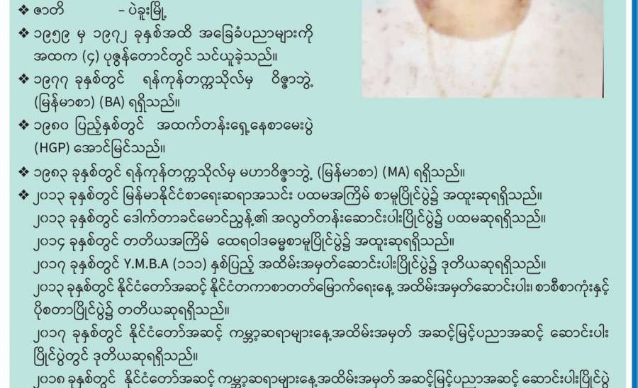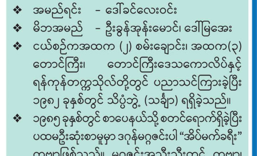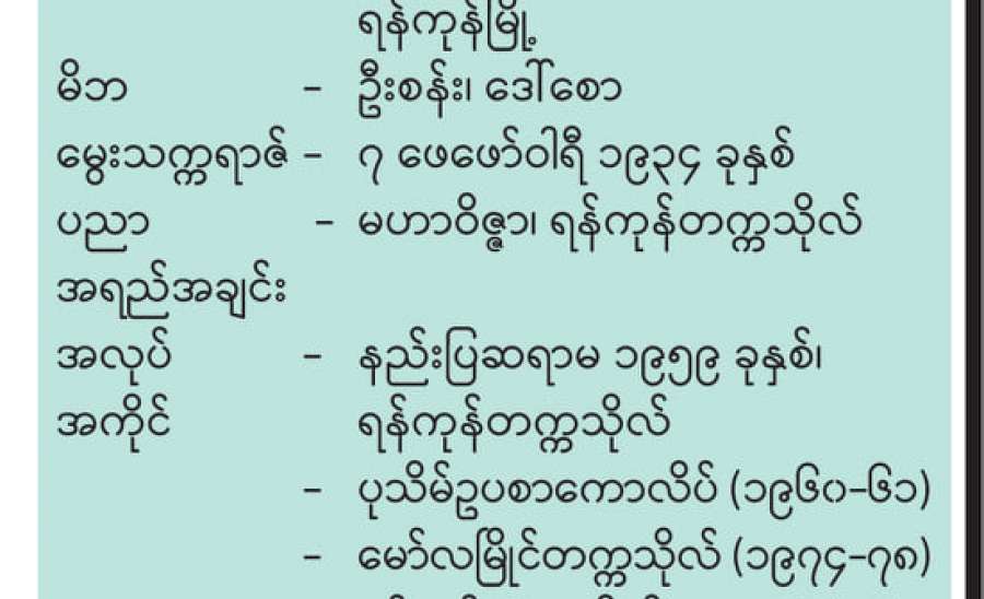 ကျွန်မရဲ့ “ရာပြည့်တက္ကသိုလ်သို့ နောက်ကျအလွမ်း” ကြေးမုံသတင်းစာ(၂၃-၁၂ - ၂၀၂၀ရက်) ထုတ် ဆောင်းပါး ဖတ်ပြီး ၈၇ နှစ် အမယ်အိုကို တကယ်လိုလိုလားလား မေတ္တာစကားပြောကြားတာတွေအတွက် ကျေးဇူးတင်ပါတယ်။ ဒေါက်တာခင်သန်းဦး (မမိုးမြေ) ကဆို ခေါင်းစဉ်တောင်ပေးပြီး နောက်ဆက်တွဲရေးဖို့ပြောသလို စာချစ်သူ စာဖတ်သူ ခင်မြနွယ်ဆိုရင် သူ့ရဲ့ မဟာဝိဇ္ဇာကျမ်း ကြီးကြပ်သူ ဆရာ ဖိုးကျော်မြင့်ရဲ့ သွင်ပြင်၊ စိတ်ဓာတ် ခိုင်မာမှု၊ ကိုယ်ကျင့်သိက္ခာစတာလေးတွေပေါ်အောင် ရေးပေးပါလို့ ပြောလာပါတယ်။ တကယ်တော့ အရှိကို အရှိအတိုင်း ရေးချင်ပေမယ့် ကိုယ်ရည်သွေးရာ ရောက်မှာစိုးလို့ မရေးချင်ပါ။ “ဝိုင်းပြောသိလိမ့်” သဘောပဲထား ချင်ပါတယ်။ ခင်ပွန်းသည် ဦးဖိုးကျော်မြင့် (မြန်စာဂုဏ် ကျော်မြင့်)နဲ့ ကျွန်မတို့ နှစ်ယောက်က ဆရာ ဆရာမ ဘဝကို နှစ်နှစ်သက်သက် ရွေးချယ်ခဲ့ကြတာပါ။ အခုတော့ သူနဲ့ ပတ်သက်ပြီး ကျွန်မရဲ့ သစ္စာစကားနဲ့ဝေမျှချင်မှု၊ သူ့ရဲ့ လုံ့လ၊ ဝီရိယကြီးမားမှု၊ မျိုးဆက်သစ်တွေကို အကျိုးပြုစေချင်တဲ့ ရည်ရွယ်မှုနဲ့ ရေးတာဖြစ်ပါ တယ်။