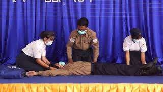 မြန်မာနိုင်ငံကြက်ခြေနီအသင်း လားရှိုးမှ ဓါတ်လိုက်ခံရသောလူနာကို CPR လုပ်ဆောင်ခြင်းသရုပ်ပြ