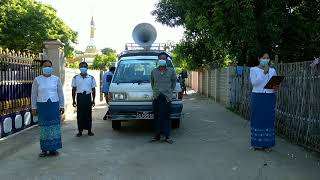 ကိုဗစ်-၁၉ ရောဂါ ကာကွယ် ထိန်းချုပ်ရေးနည်းလမ်းများ ပြည်သူများသိရှိစေရေး အသံချဲ့စက်ဖြင့်နှိုးဆော်