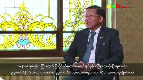နိုင်ငံတော်စီမံအုပ်ချုပ်ရေးကောင်စီဥက္ကဌ တပ်မတော်ကာကွယ်ရေးဦးစီးချုပ် ဗိုလ်ချုပ်မှူးကြီး မင်းအောင်လှိင်နှင့် Russia 24 ရုပ်သံ၏ International Review အစီအစဉ်တင်ဆက်သူ Mr. Fedor Lukyanov တို၏ အင်တာဗျူးအစီအစဉ်